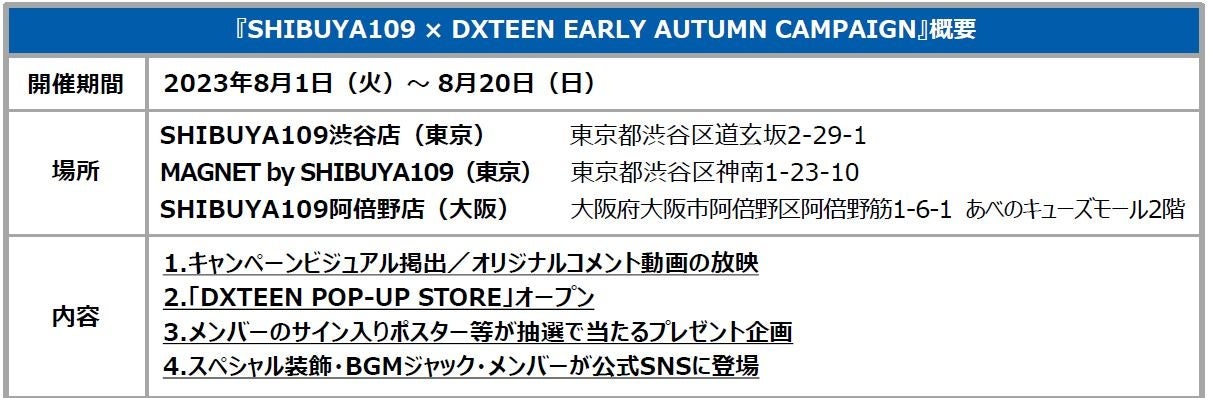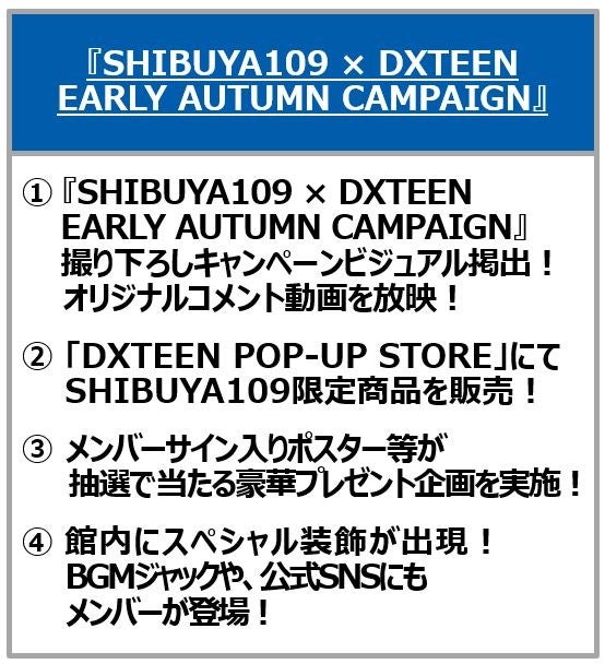 特設ページ:http://www.shibuya109.jp/x/DXTEEN_EARLYAUTUMNCAMPAIGN