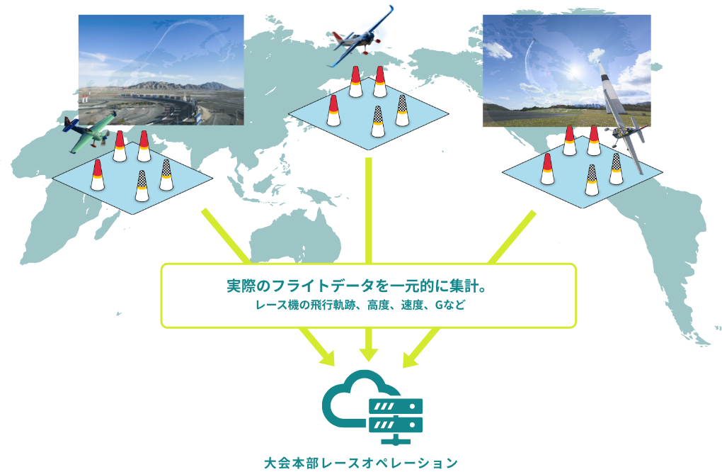 パイロットたちは、実際に世界各地の拠点でフライトを行い、リモート形式でタイムを競います。そして、観客は遠く離れたパイロットたちのフライトをAR(拡張現実)技術によって間近で観戦できるという仕組みです。
