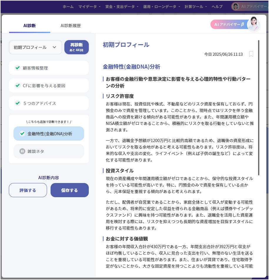 顧客の金融特性・課題をAIが分析。最適なライフプラン提案をサポート