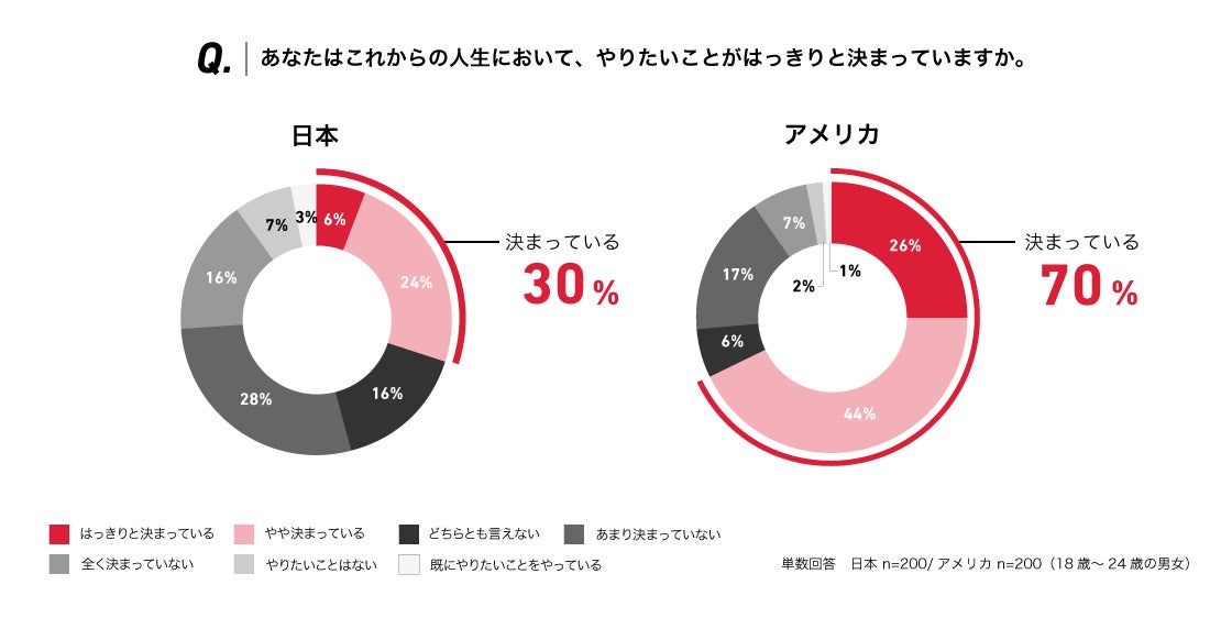 「将来やりたいことが決まっている」次世代層の割合は日本が3割、アメリカが7割と顕著な差