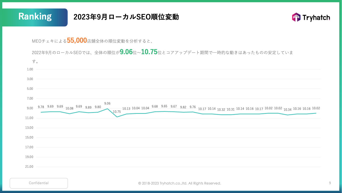 9月の全体的な順位状況はコアアップデートによる一時的な順位変動が発生したものの、安定して推移をしていました。
