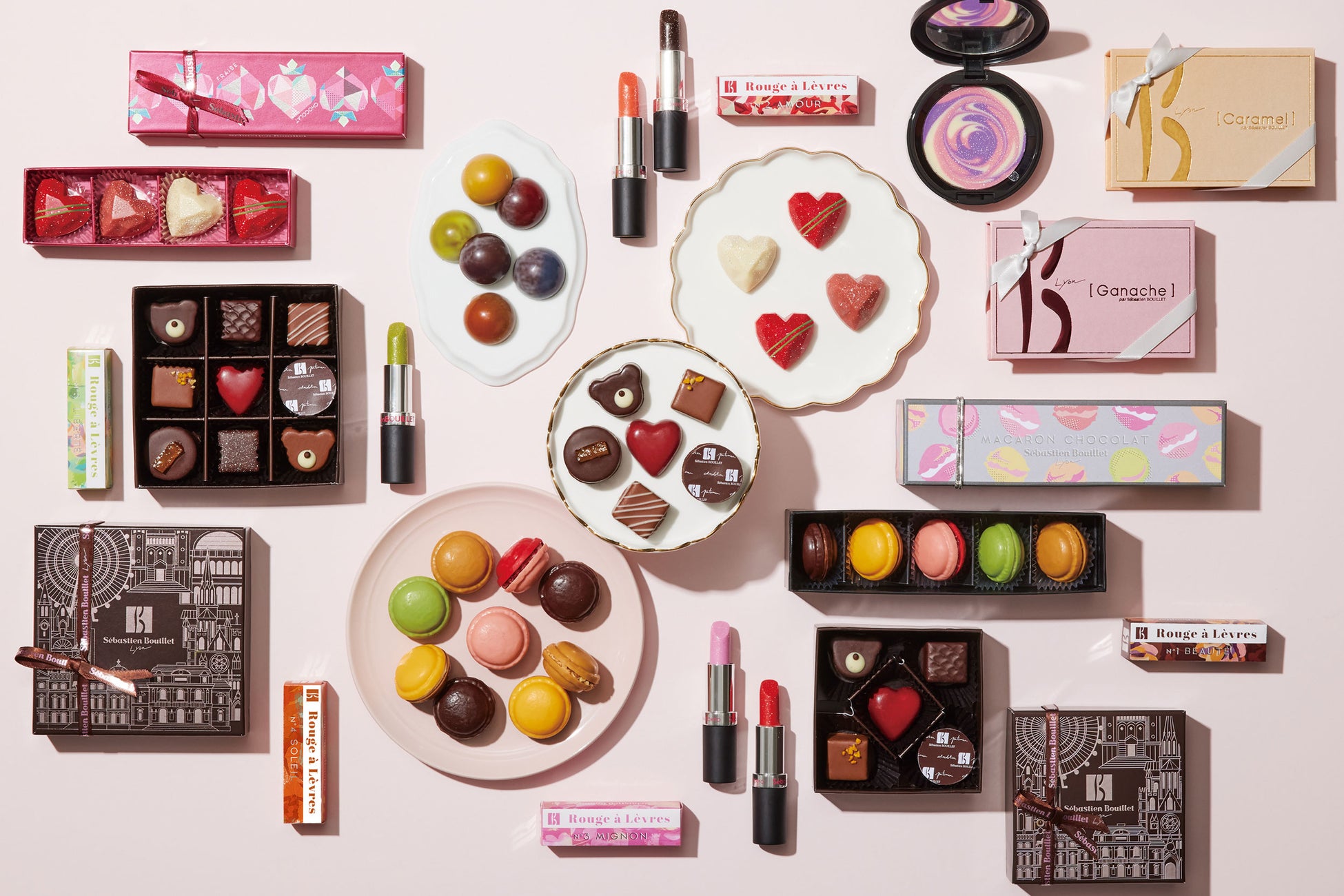 イチゴをテーマにした「フレーズショコラ」や、人気のマカロンをショコラで表現した「マカロンショコラ」、可愛らしいくま型ショコラが特徴的な「ヌヌースショコラ」、口紅型のグラマラスな「ルージュ ア レーブル」等、可愛くて美味しい遊び心たっぷりのラインナップです。