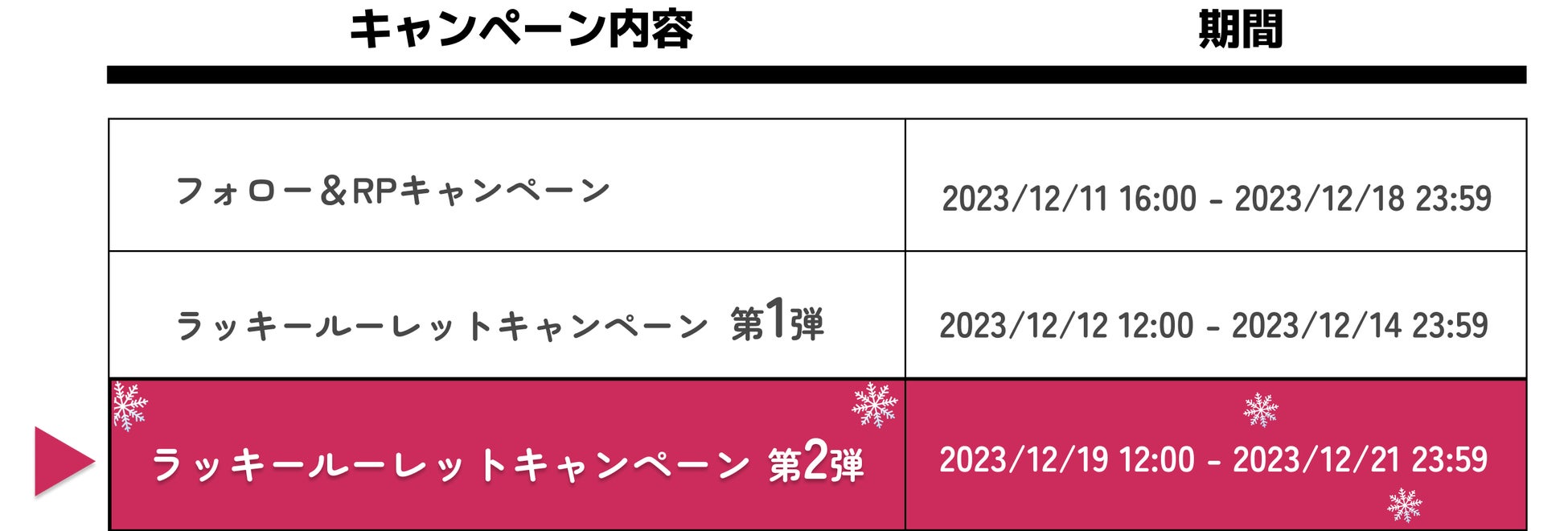 ・その他注意事項はルーレットキャンペーンページよりご確認ください。