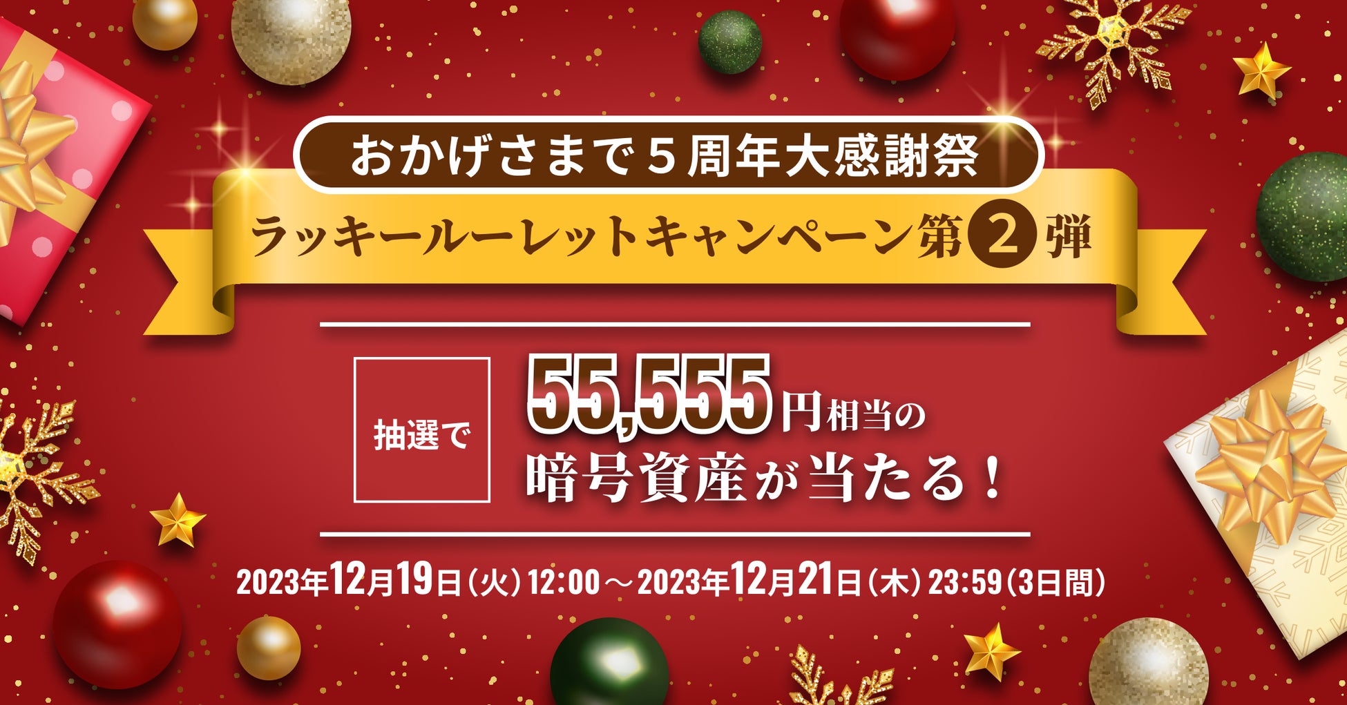 ビットトレード、おかげさまで5周年大感謝祭! ラッキールーレットキャンペーン第2弾~抽選で55,555円相当の暗号資産が当たる~