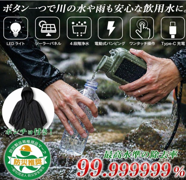 品名 :どこでも安心安全ウォーター ポータブル電動浄水器
