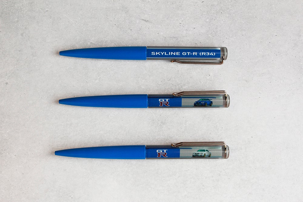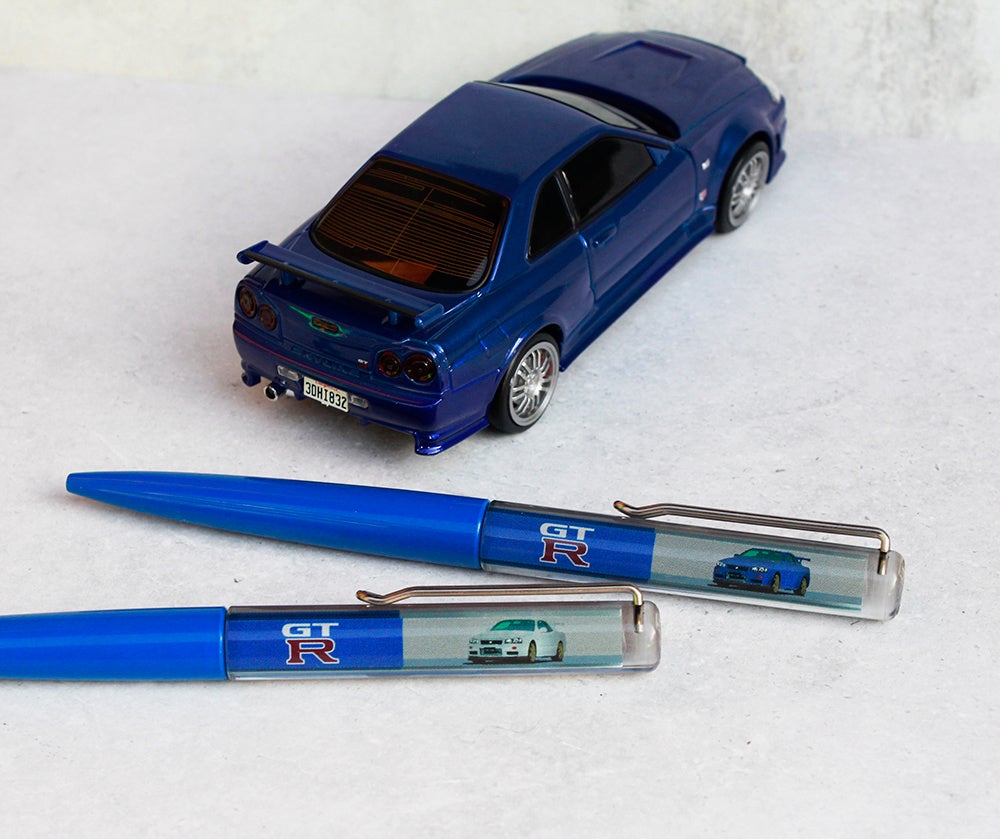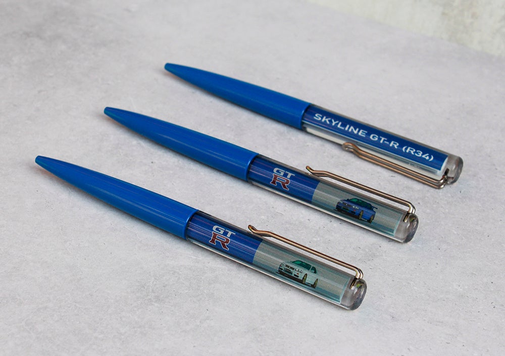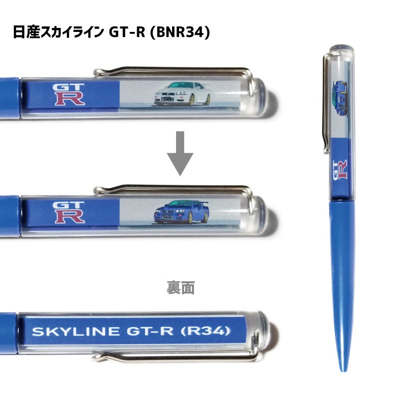 R34の愛称で知られる日産スカイライン GT-R (BNR34) の車体カラーがペンの中でゆっくりと変わる遊び心たっぷりのデザインを楽しむことができます。(400個限定生産)