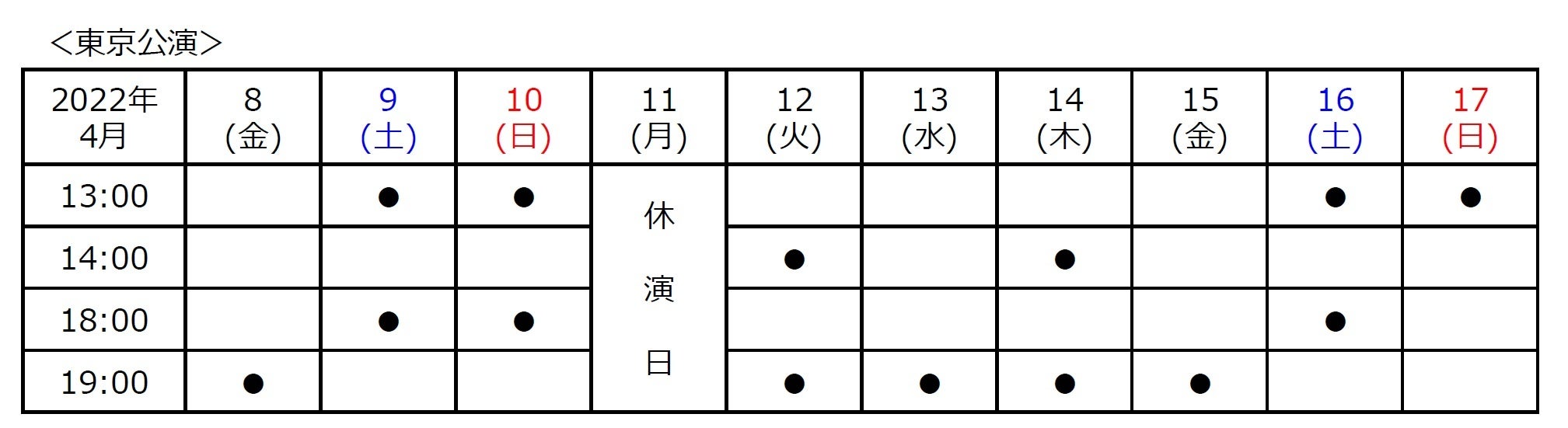 <東京>2022年4月8日(金)〜4月17日(日)@サンシャイン劇場/14ステージ