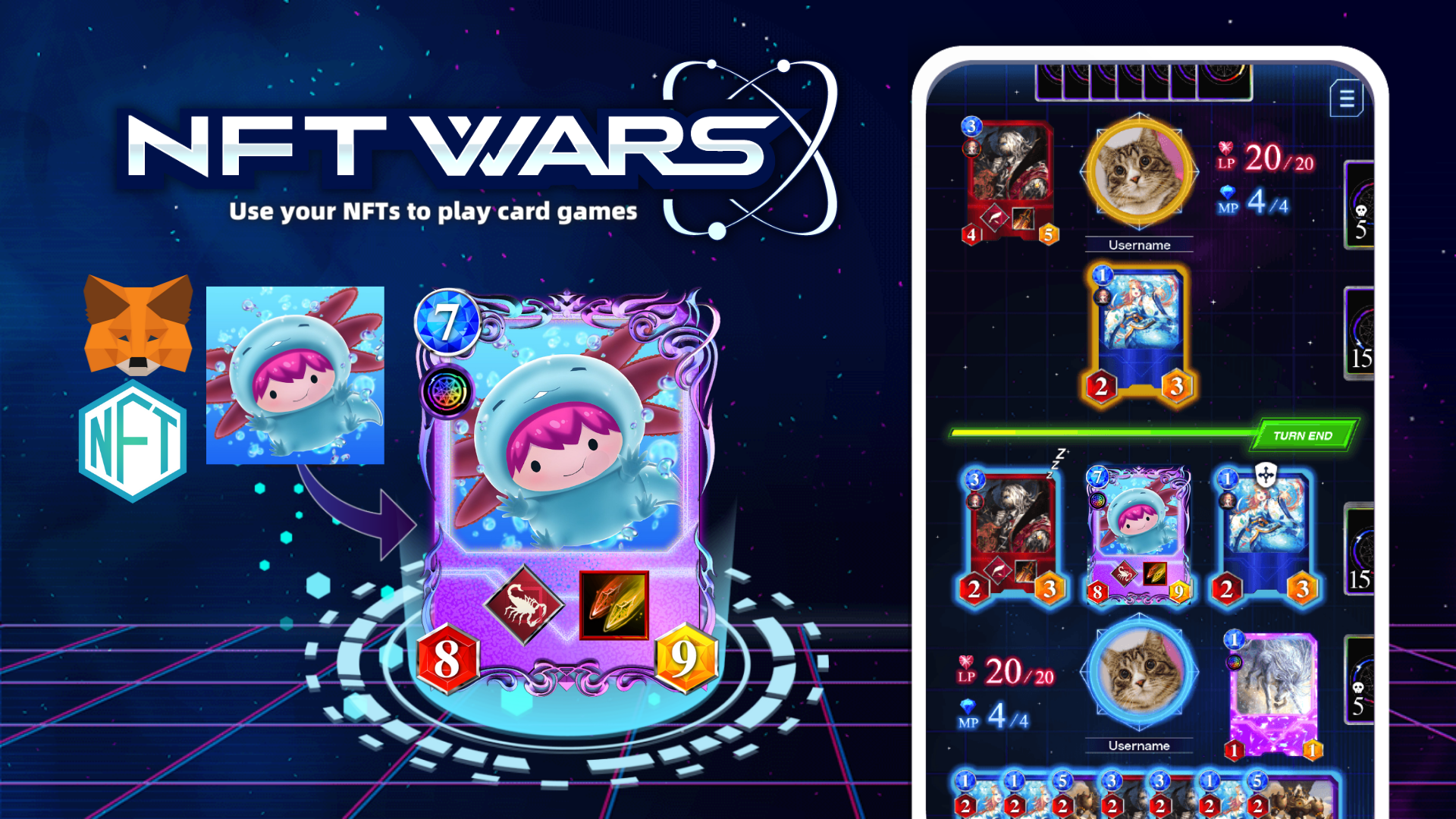 『NFTWars』は、手軽にNFTプロジェクトにゲームのユーティリティを付与できるサービスです。ユーザーはウォレットで所有するNFTを使用し、様々なNFTプロジェクトのカードゲームで遊ぶ世界の実現を目指します。