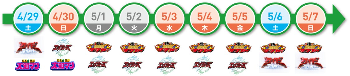 2023年4月29日(土祝)~5月7日(日) 計 9日間 ※荒天の場合、中止や順延の可能性あり