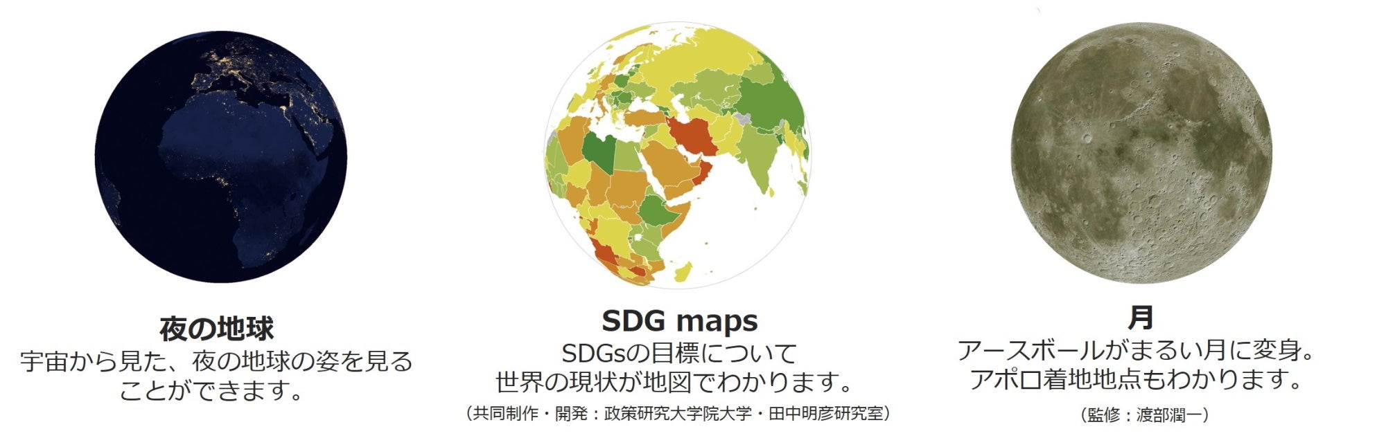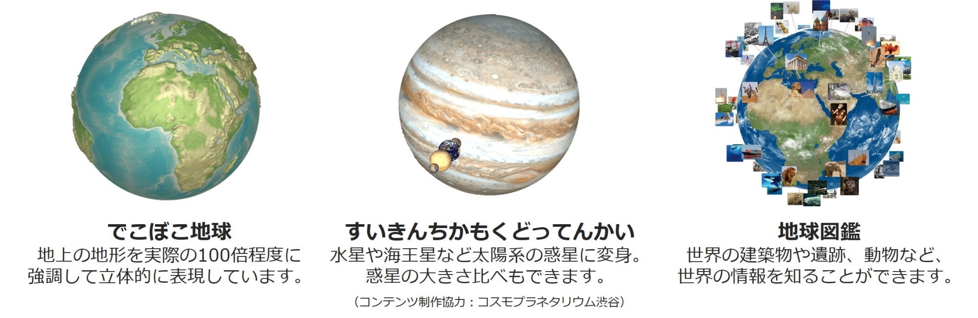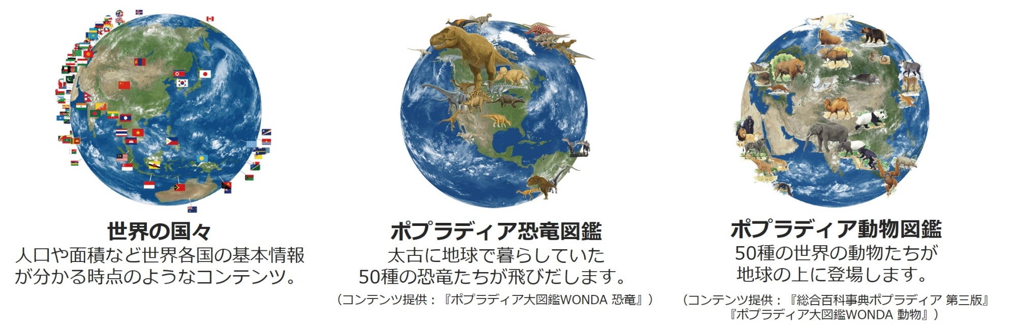 - 世界のさまざまな情報を知ることができる20種以上の多様なコンテンツ