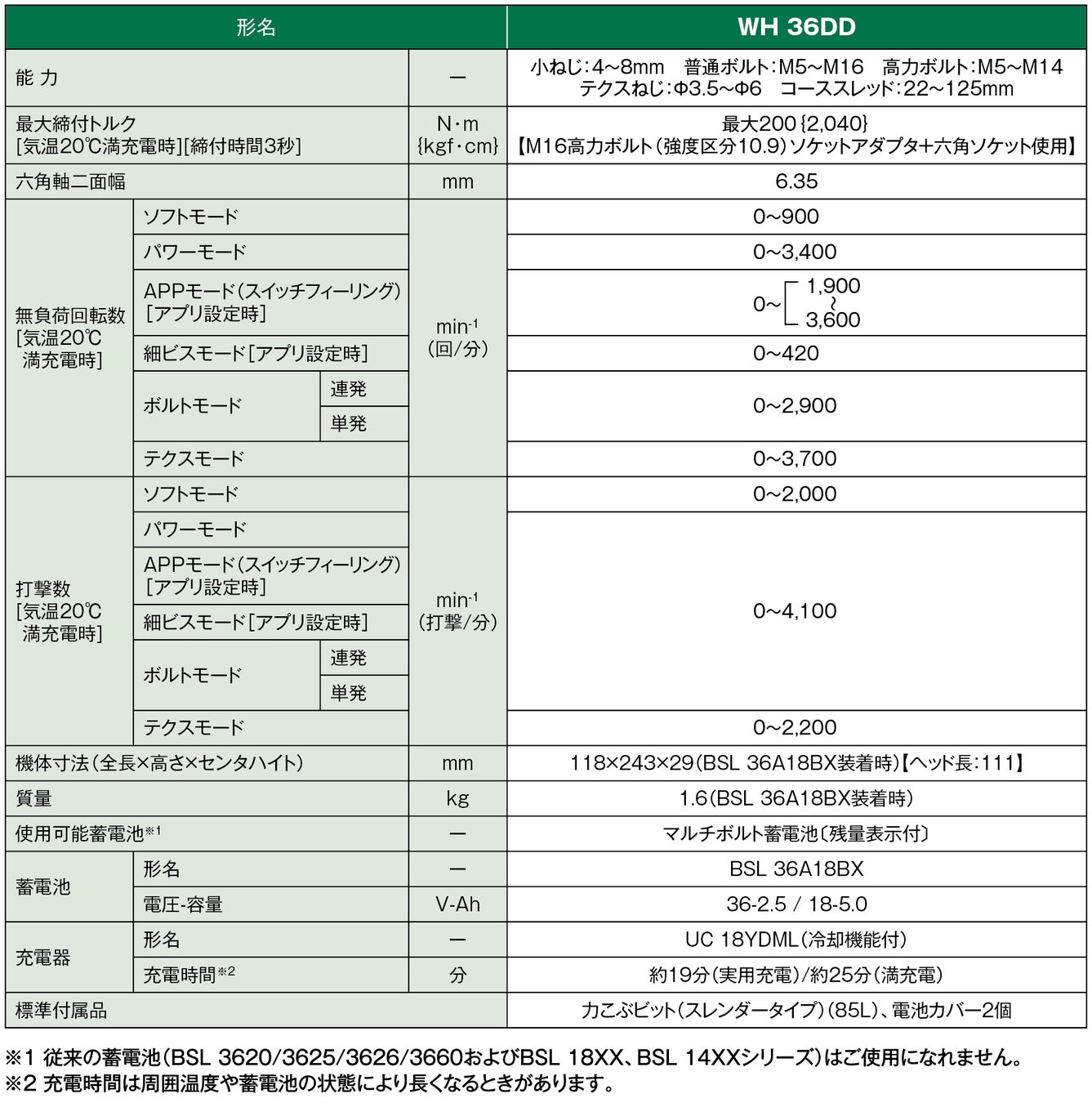 ※1 細ビスモードはBluetooth蓄電池を装着し、アプリで本モードを有効にし、使用してください。(出荷時には設定されておりません)