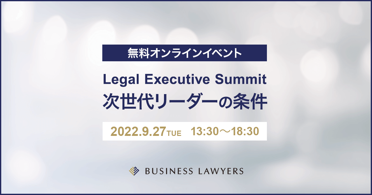 弁護士ドットコム株式会社(東京都港区、代表取締役社長:元榮 太一郎、以下当社)が運営する日本最大級の企業法務実務ポータル「BUSINESS LAWYERS(ビジネスロイヤーズ)」は、経営と法務に関するカンファレンス「Legal Executive Summit(リーガルエグゼクティブサミット)〜次世代リーダーの条件〜」を9月27日(火)に開催することをお知らせいたします。
