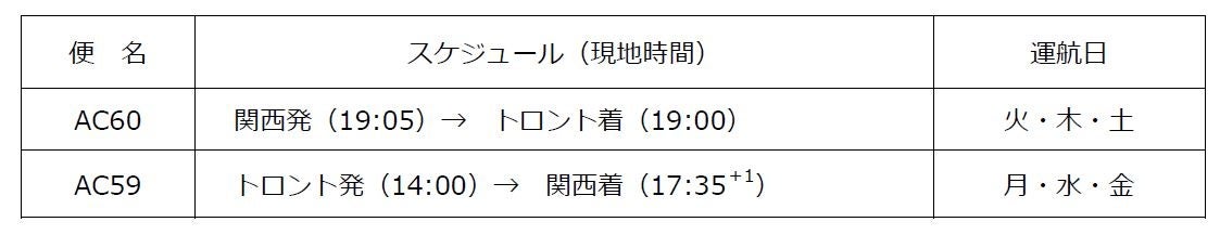 関西エアポート株式会社は、エア・カナダ(AC)が2024年6月18日(火)より関西=トロント線を今夏限定で週3便運航することをお知らせいたします。