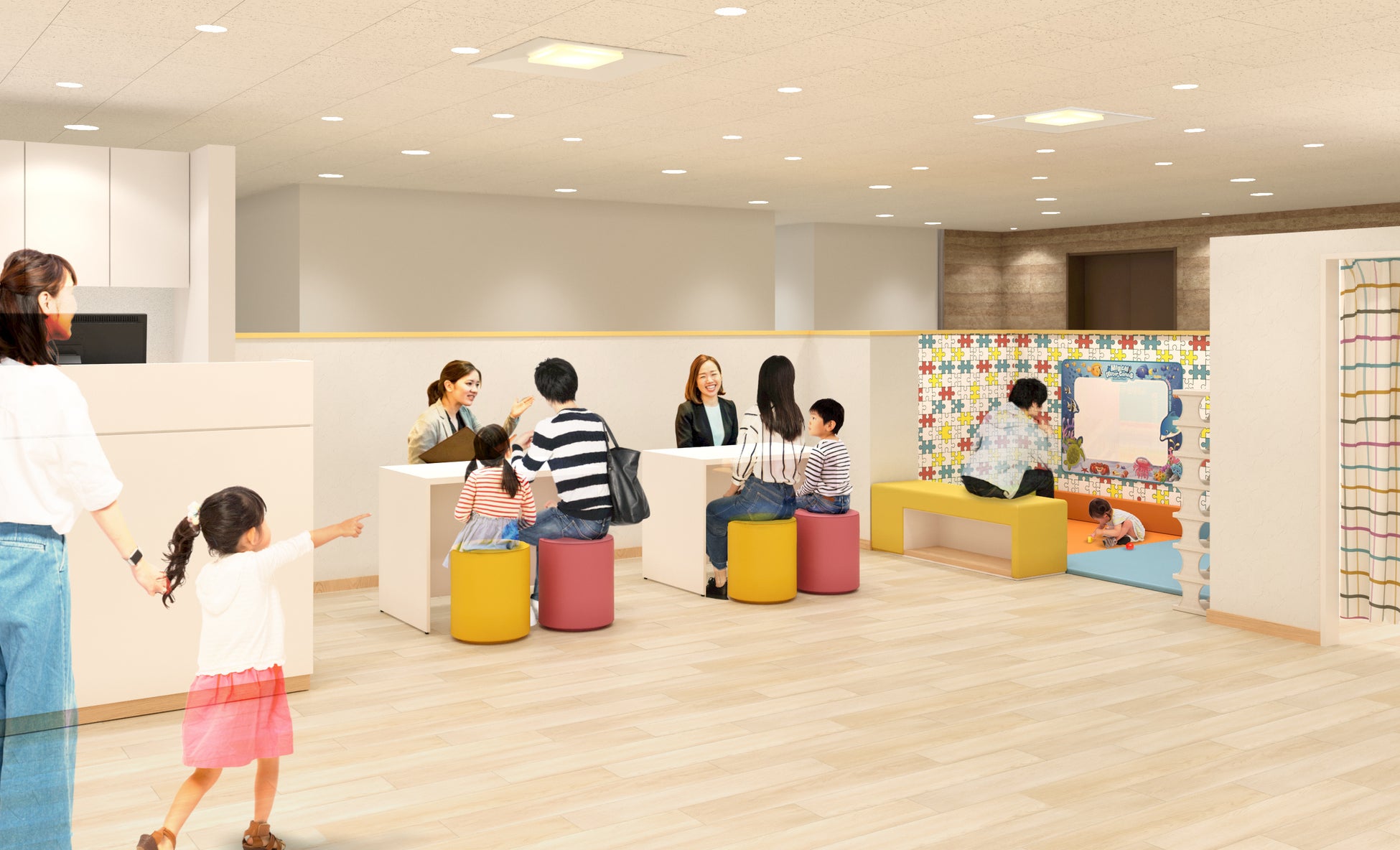 お子様連れでも安心!快適な空間でメガネ選びをお楽しみください。増床により、お子様が楽しく過ごせるキッズスペースをご用意いたしました。接客テーブルも増設し、ベビーカーでもゆったりと過ごせる広さを確保いたしました。小さなお子様連れでも、安心してメガネ選びをお楽しみいただけます。