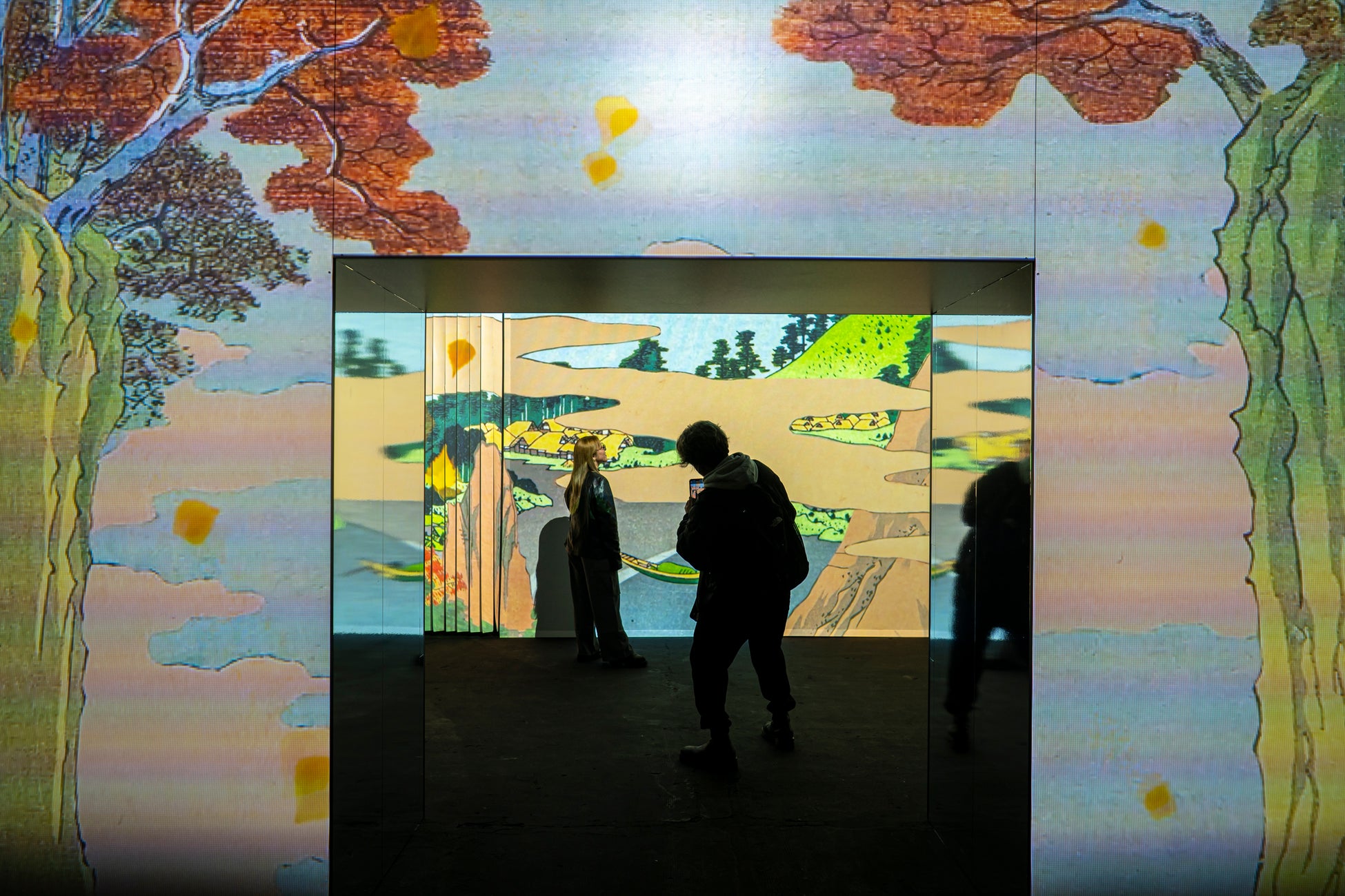 葛飾北斎、歌川国芳、歌川広重、喜多川歌麿、東洲斎写楽、歌川国貞など世界的な浮世絵師の作品300点以上をもとに、3DCGアニメーションやプロジェクションマッピングを駆使して大人から子どもまで楽しめるグラフィカルなデジタルアート作品として描き、立体映像空間で浮世絵の世界に没入できる体感型デジタルアートミュージアムです。