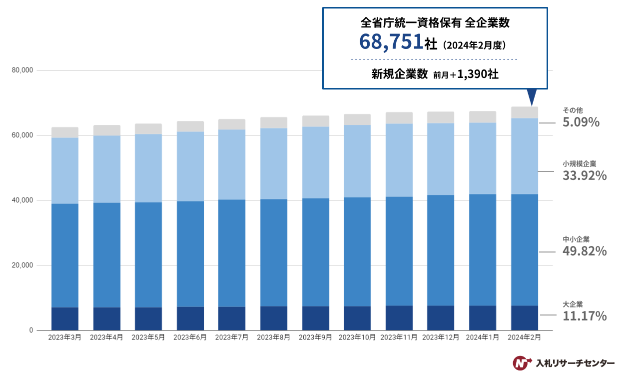 全省庁統一資格保有【全企業数】:68,751社(2024年2月度)