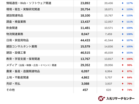 ・案件に関連する複数の業種カテゴリが付与されることがあるため、業種で絞り込みを行う際には意図しない業種が含まれている場合あり
