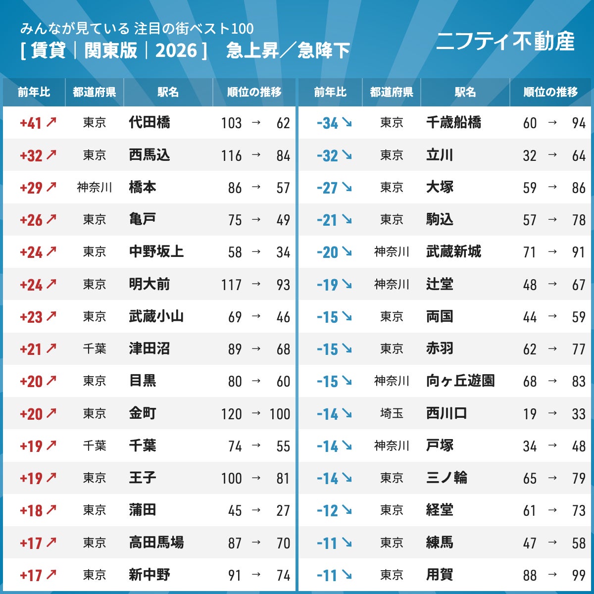 ◆注目の街ベスト100 年間ランキング2026【関東版】