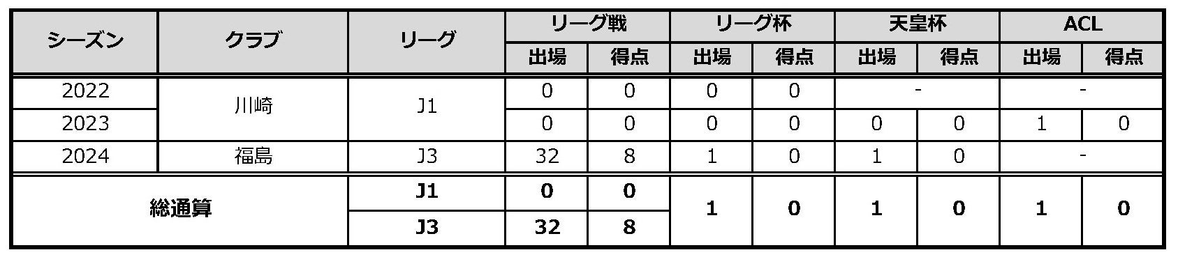 サッカー歴:真福寺FC→FC多摩ジュニア→FC多摩Jrユース→川崎フロンターレU-18→川崎フロンターレ→福島ユナイテッドFC