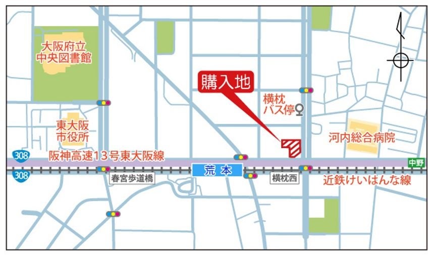 購入地は、近鉄けいはんな線「荒本」駅より徒歩2分、近鉄バス「横枕」駅より徒歩2分の好立地です。