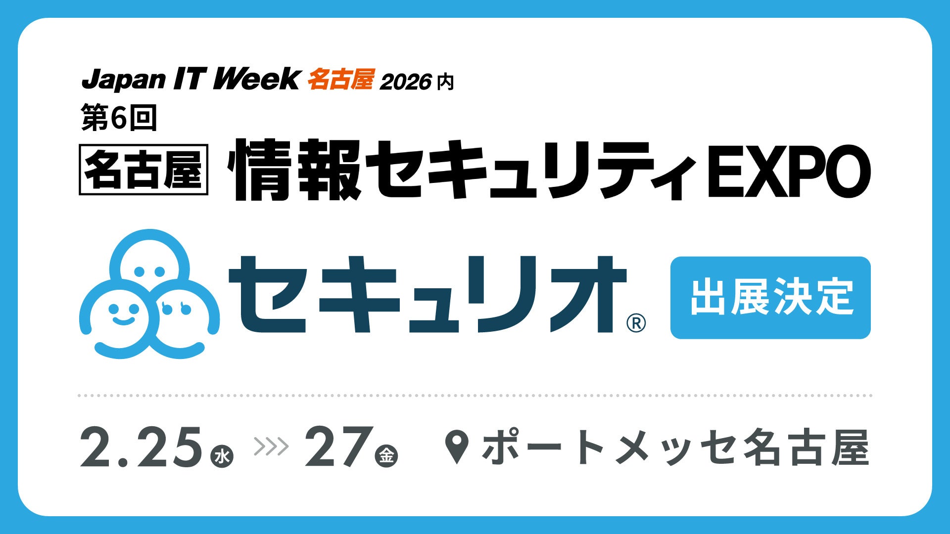 セキュリティ教育クラウド「セキュリオ」を提供するLRM株式会社(本社:兵庫県神戸市、代表取締役:幸松哲也)は2026年2月25(水)~27日(金)の3日間、ポートメッセなごやで開催される「Japan IT Week 名古屋 2026」内の「第6回名古屋情報セキュリティEXPO」にて、セキュリティ教育クラウド「セキュリオ」を出展することをお知らせいたします。