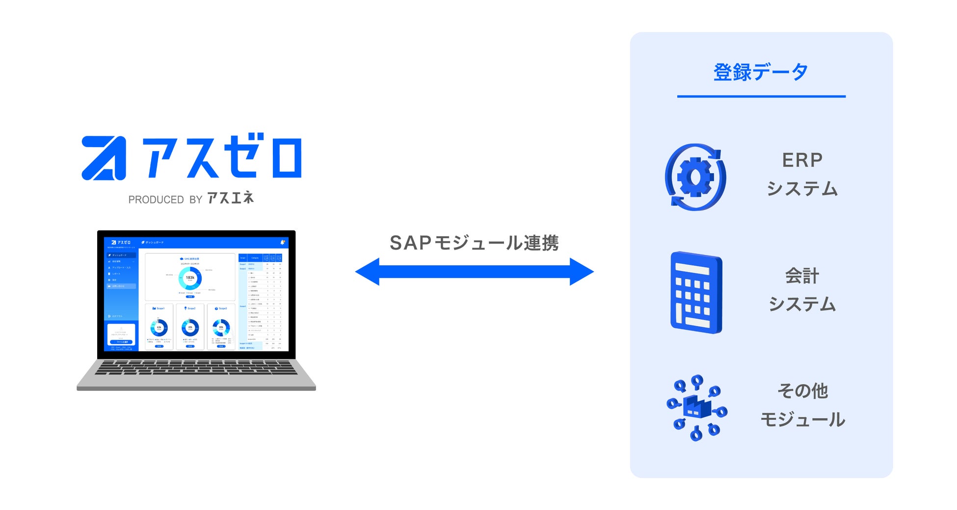 アスエネ株式会社(本社:東京都港区、代表取締役CEO:西和田 浩平、以下「当社」)の運営するCO2排出量見える化・削減・報告・報告クラウドサービス「アスゼロ」は、SAPとのモジュール連携を開始しました。これにより、特に大手企業が導入しているERPなどのさまざまなシステムとAPI連携ができるようになり、CO2排出量の可視化を効率的に行うことが可能となります。
