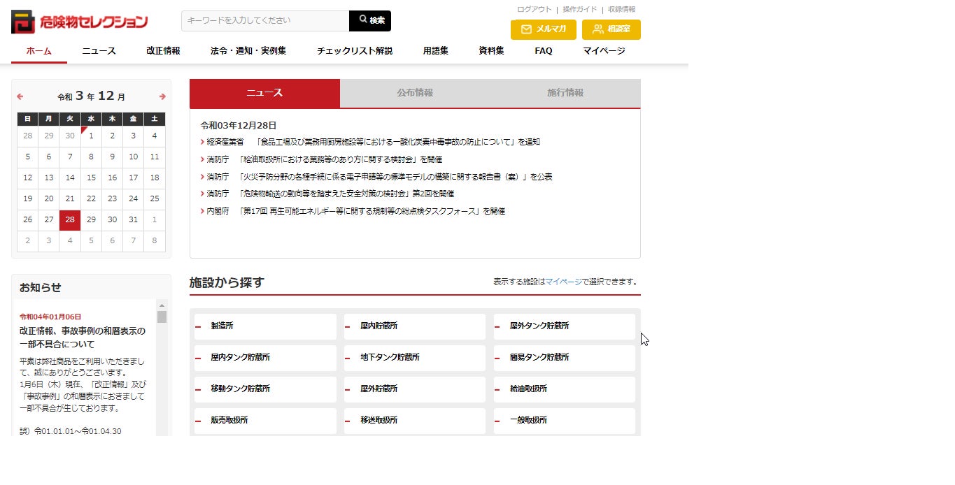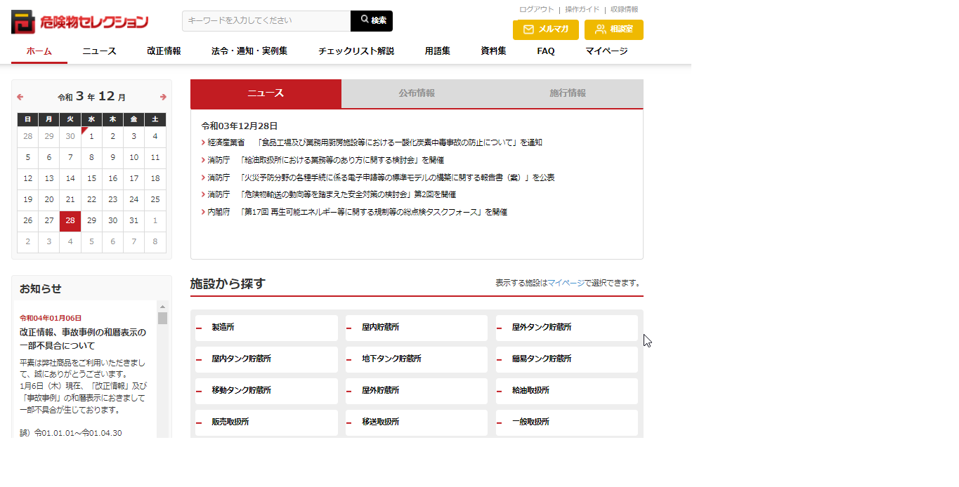 危険物施設に関する法情報の管理業務を支援するWEBサービスです。