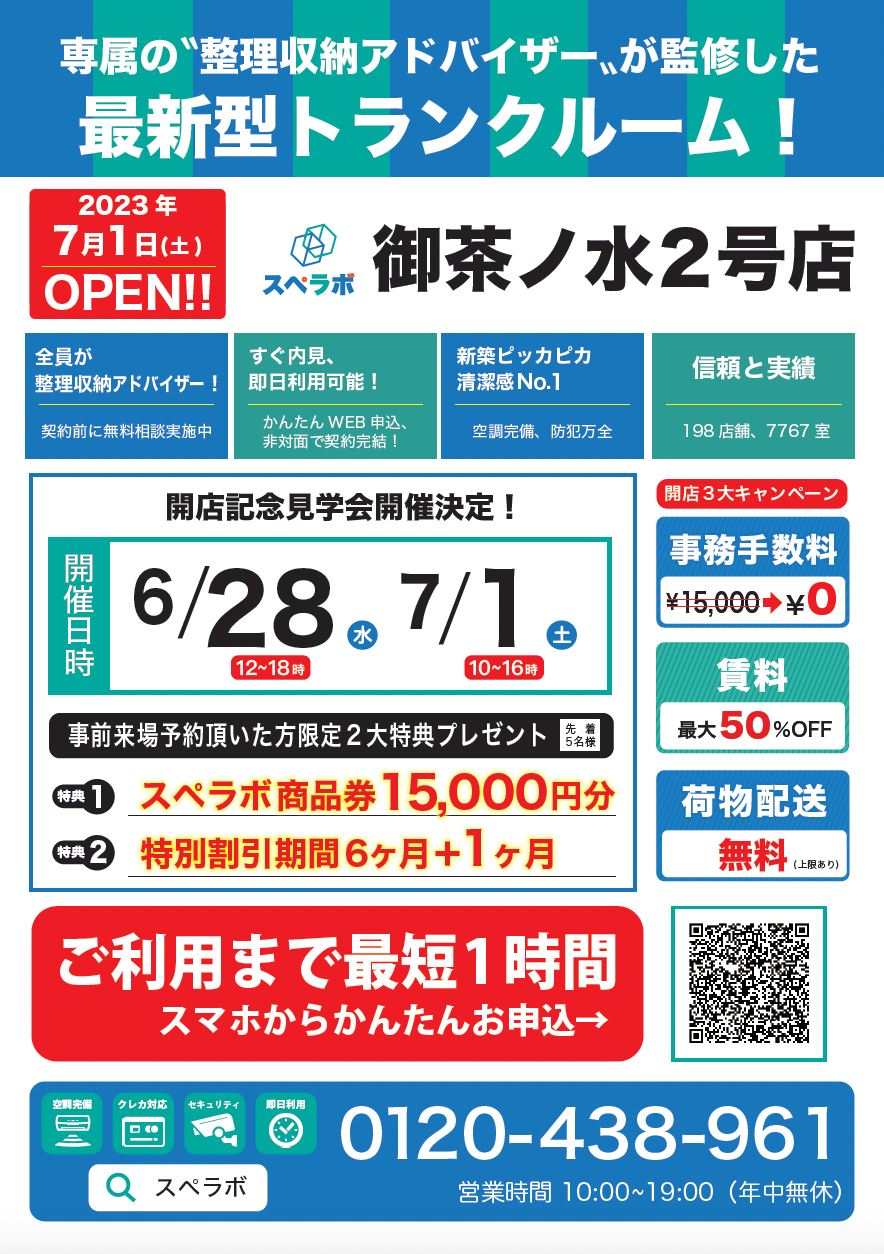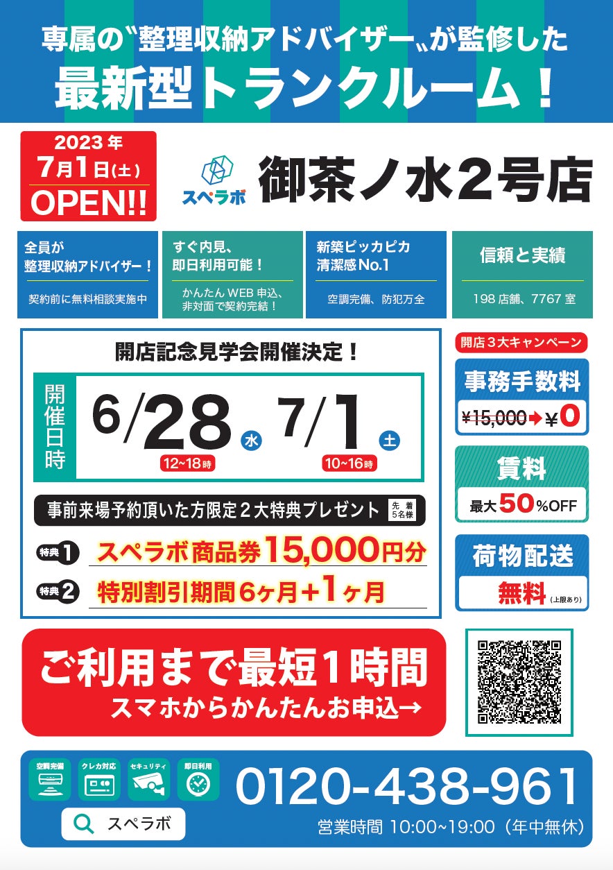 【御茶ノ水2号店/7月1日(土)オープン】見学から契約、解約まで完全非接触・非対面、お申し込みからご利用まで最短1時間!都内、大阪などにて絶賛運営中のトランクルーム【スペラボ】が御茶ノ水駅近くに出店!