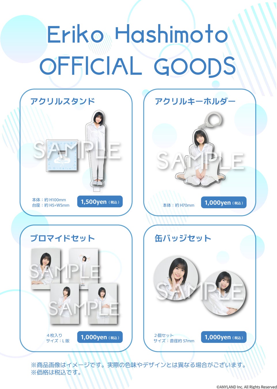 ファンクラブ開設後、初となるオフィシャルグッズは、パジャマ姿の限定ビジュアルを使用した“アクリルキーホルダー”や“ブロマイドセット”など、橋本恵理子のこだわりが詰まったスペシャルなラインナップです。