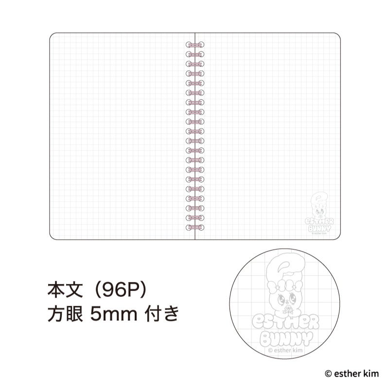 リング部分はキュートなピンクカラーで、本文は表やグラフが書きやすい5mm方眼となっています。
