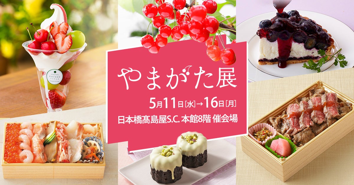 日本橋高島屋S.C.では、5月11日(水)より、「第18回 やまがた展」を開催いたします。昨年、一昨年は、緊急事態宣言発出の影響もあり中止をした為、3年ぶりの開催となります。山形で採れたフルーツを使ったスイーツや、人気の米沢牛を使用したお弁当をはじめ、山形の美味や工芸品50店舗が揃います。