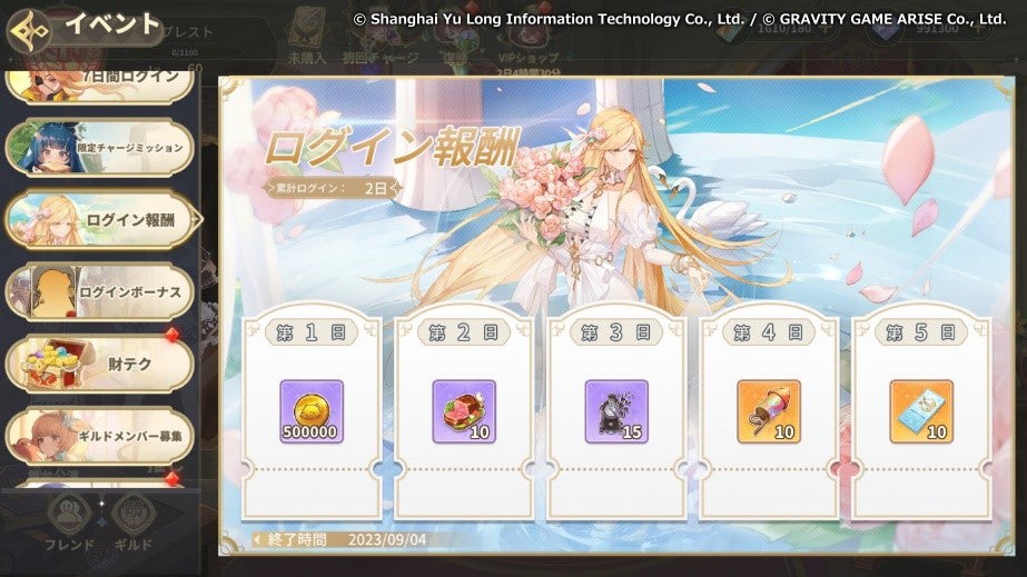 2023年8月29日(火)から9月4日(月)23:59までの間、ログインした累計日数に応じて報酬を獲得できます。