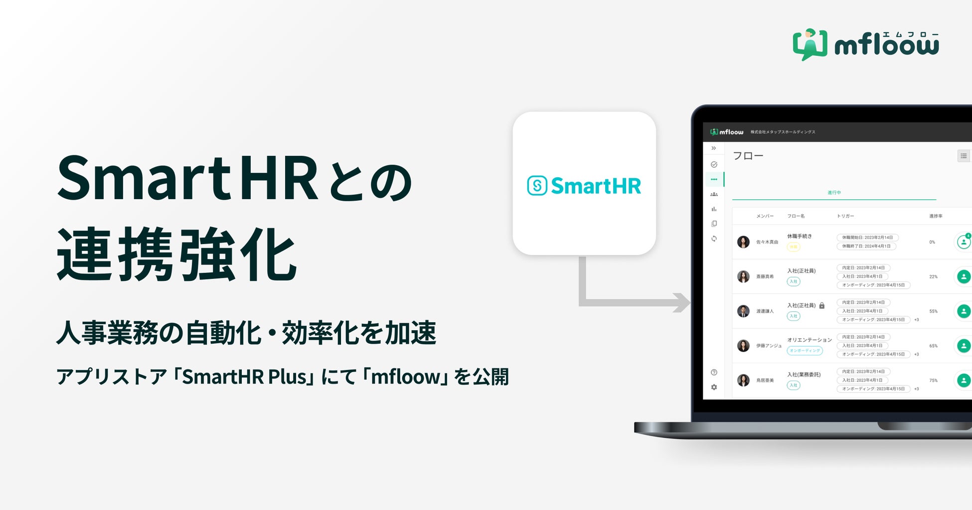 株式会社メタップスホールディングス(渋谷区、代表取締役社長 山﨑 祐一郎)が提供する従業員ライフサイクル管理ツール「mfloow(エムフロー)」は、「SmartHR(スマートエイチアール)」との連携を強化します。これにより、情報管理とタスク管理を一気通貫で行えるようになります。