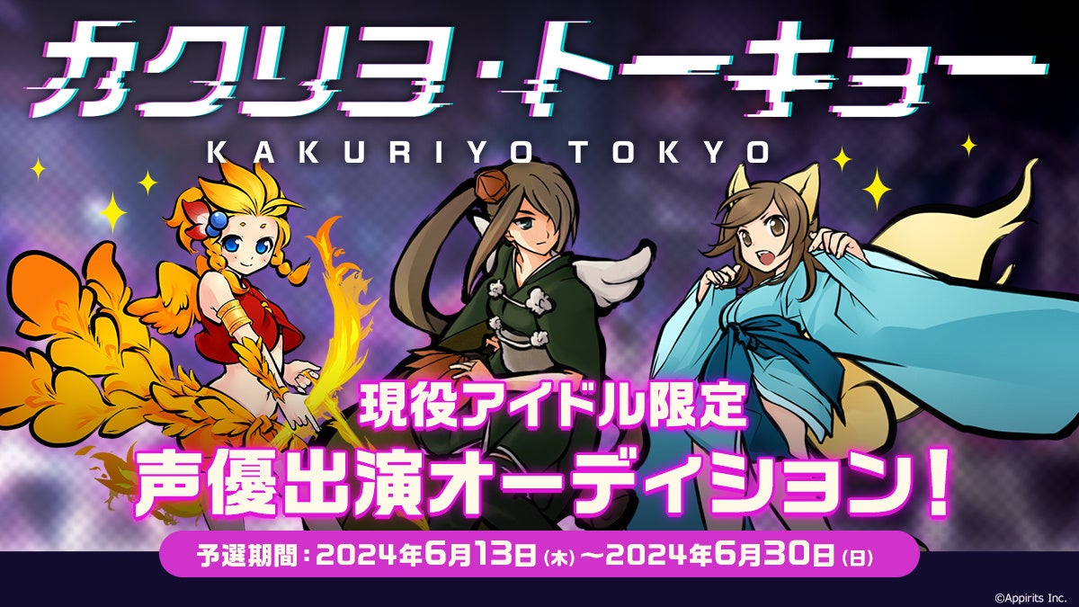 アピリッツ、今秋リリース予定のスマートフォン向けゲームアプリ『カクリヨ・トーキョー』にて「現役アイドル」を対象とした声優オーディションを開催!