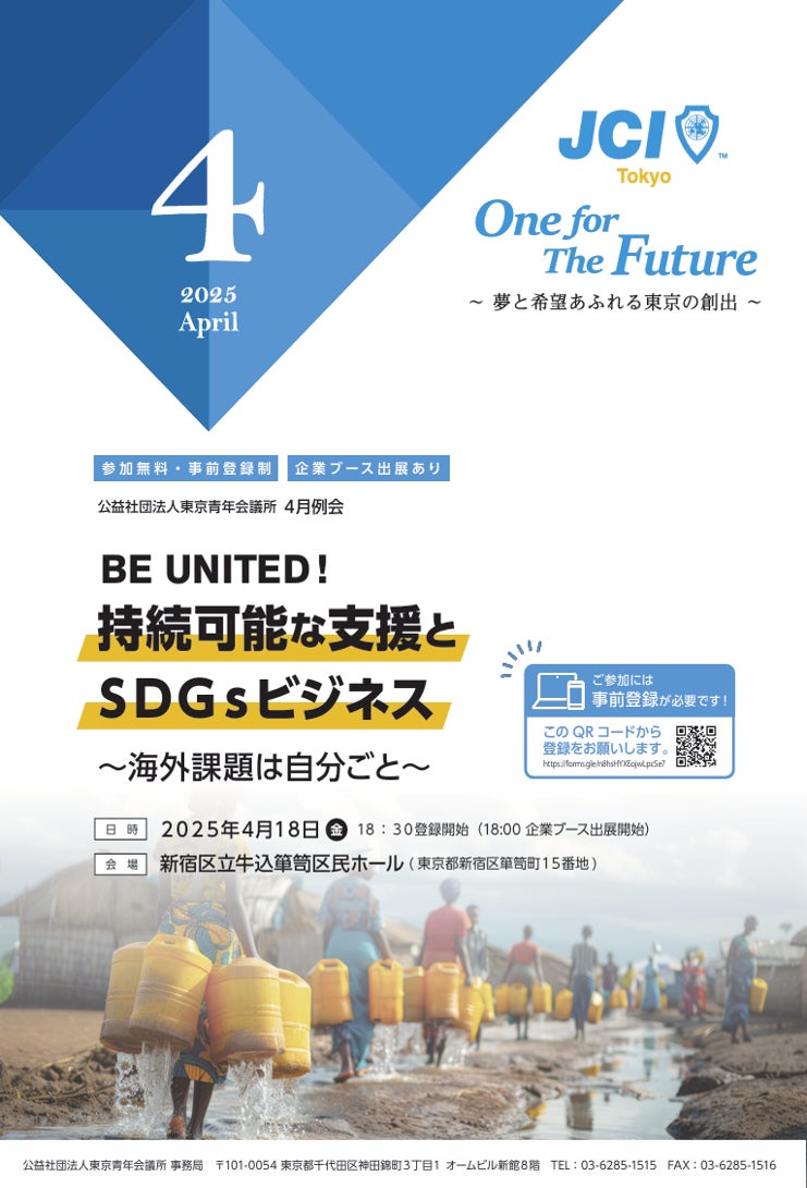 公益社団法人東京青年会議所は4月18日(金)に新宿区立牛込箪笥区民ホールにて、