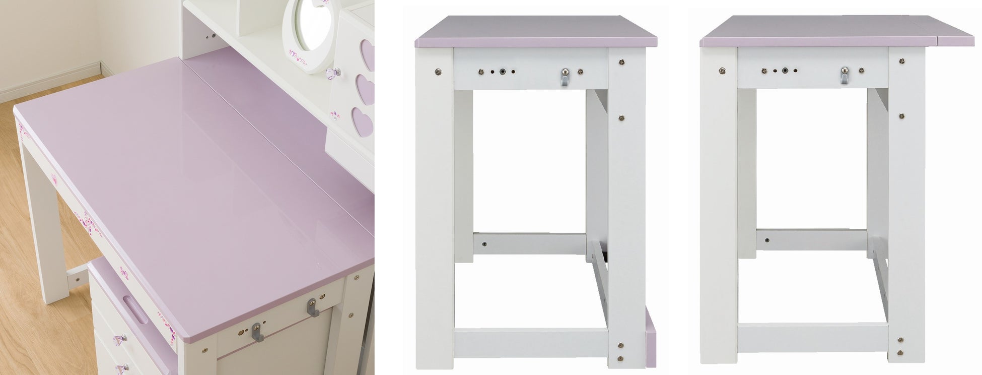 デスクの奥行は51㎝から59㎝に拡張可能です。成長にあわせて教材が増えてきた時も、天板を拡張することで広く使用していただけます。