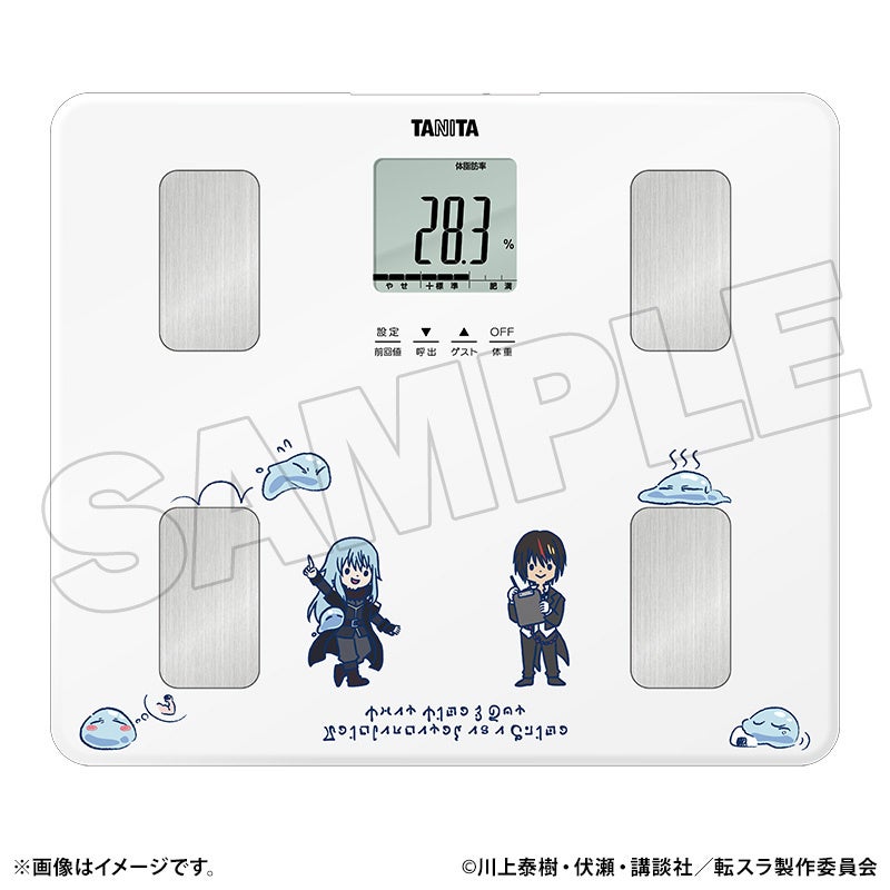 本POP UP SHOPの目玉商品として、タニタ製の音声体組成計を受注生産で展開予定です。リムルとディアブロをあしらったオリジナルデザインを採用し、作品の世界観を日常生活の中でより身近に感じていただける限定商品です。