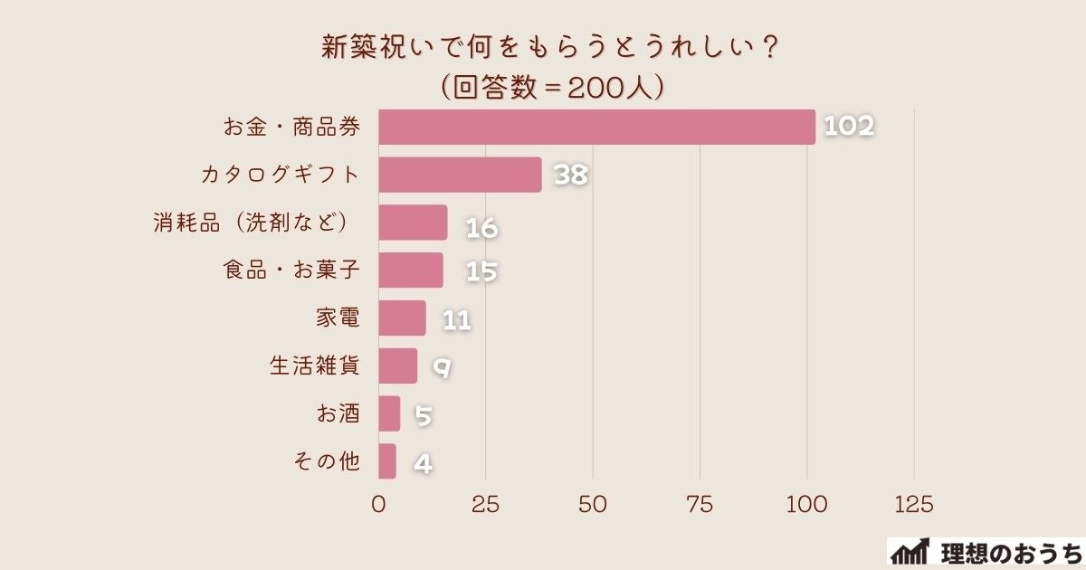 - 【総括】今回のアンケートで新築祝いで何をもらうとうれしい?1位は『お金・商品券』でした