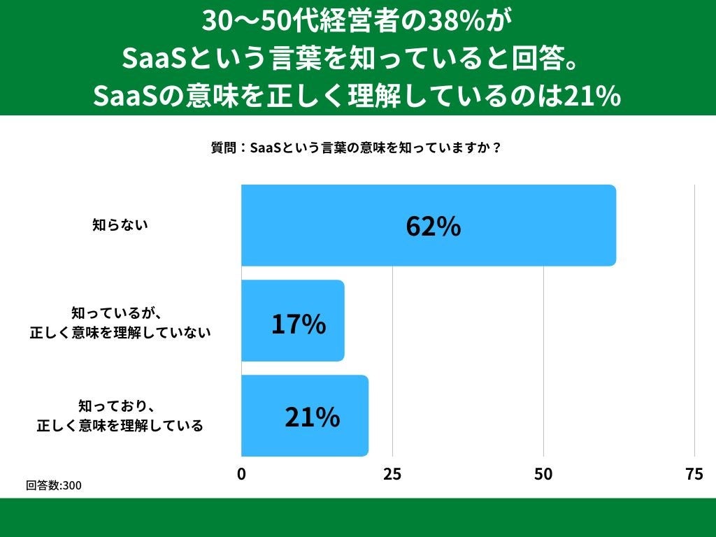30~50代経営者の38%がSaaSという言葉を知っていると回答。SaaSの意味を正しく理解しているのは21%【SaaSに関するアンケート】