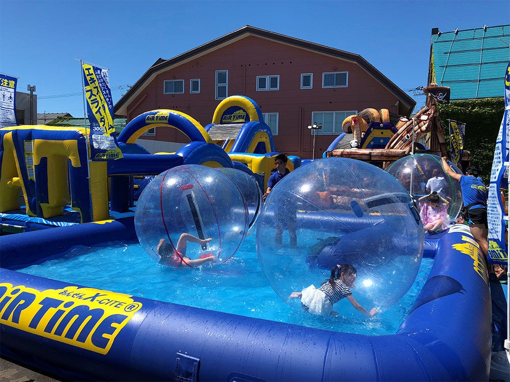 ビニールボールに入ったら、水のうえを歩く!走る!プカプカ浮かぶだけでも楽しめる。