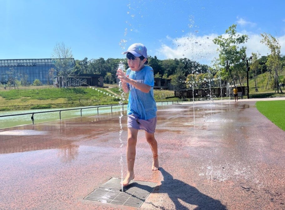 噴水に触れたり、思い切り飛び込んだりして楽しもう!