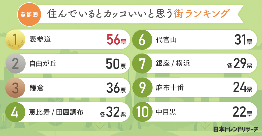 日本トレンドリサーチ(運営会社:株式会社NEXER)は、株式会社土地活用と共同で「住んでいるとカッコいいと思う街」に関するアンケートを実施し、結果をサイト内にて公開したので紹介します。