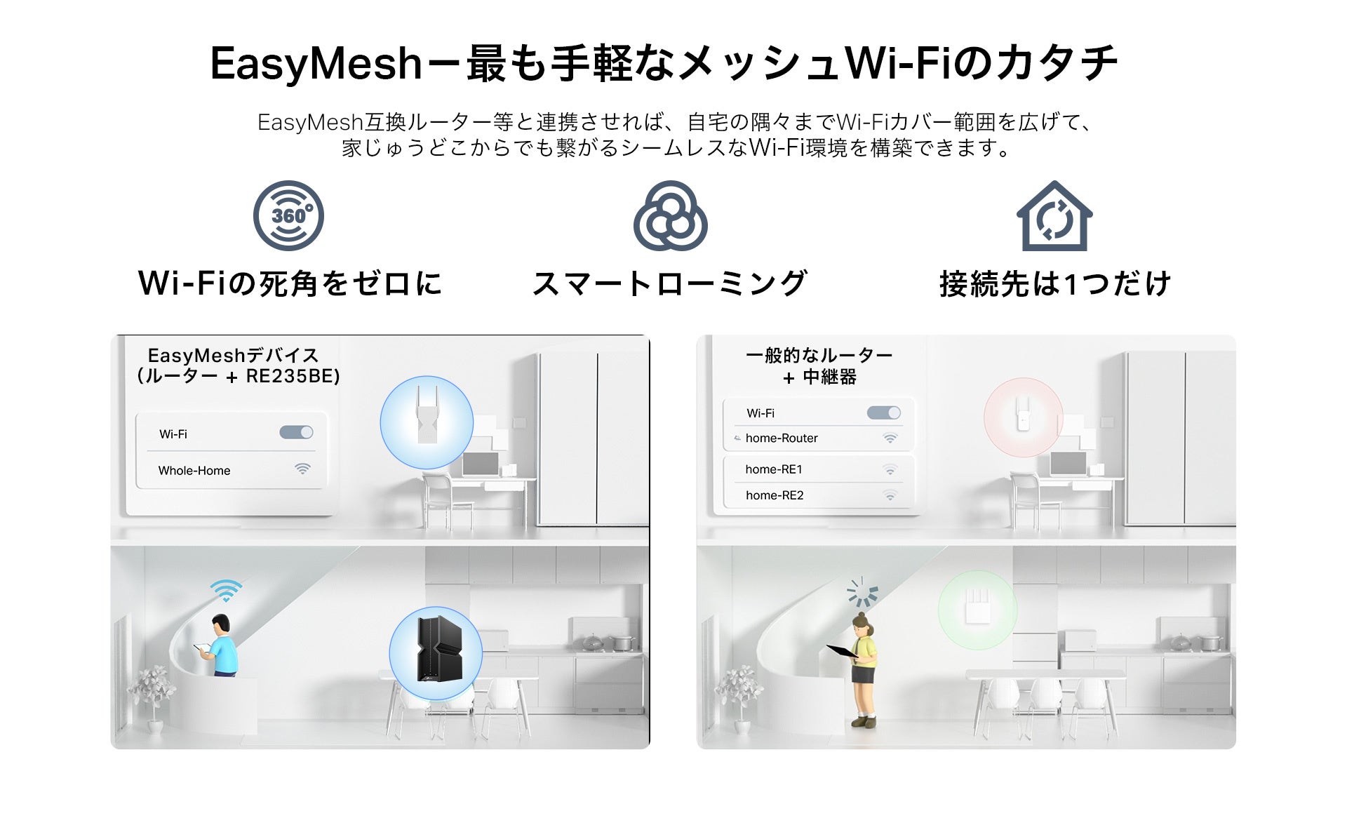 ■≪EasyMesh互換≫対応ルーターと合わせて家じゅうシームレスなWi-Fiを実現