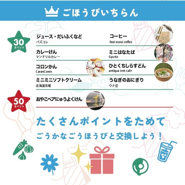 ポイントがたくさん溜まったらごほうびと交換できるよ!