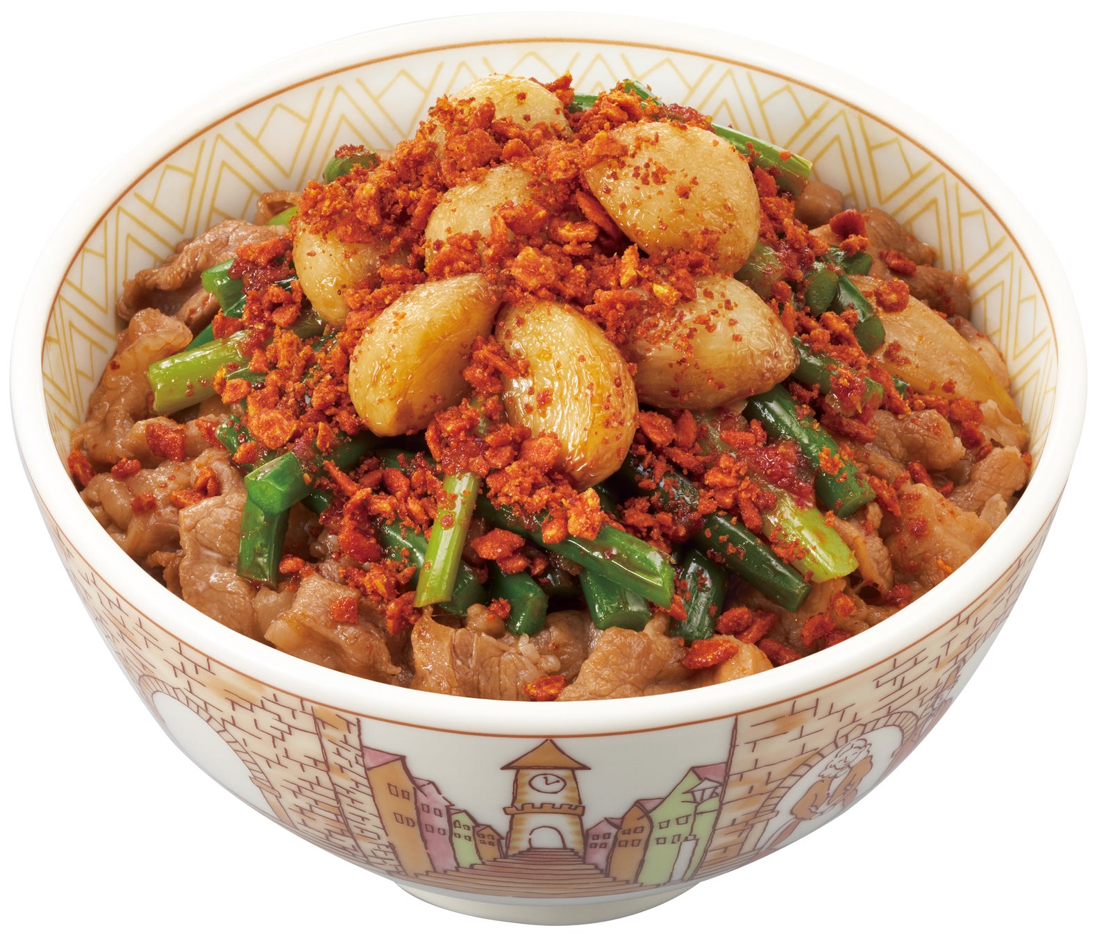 シャキシャキ食感のニンニクの芽を、ラー油や唐辛子、刻みニンニクを合わせた“すき家特製旨辛だれ”で和えたトッピングは、旨辛な味わいと食感がやみつきになる美味しさです。刻みニンニクのパンチのある風味と唐辛子の辛さがニンニクの芽の旨みを引き立て、「もう一口!」と食欲をかき立てます。
