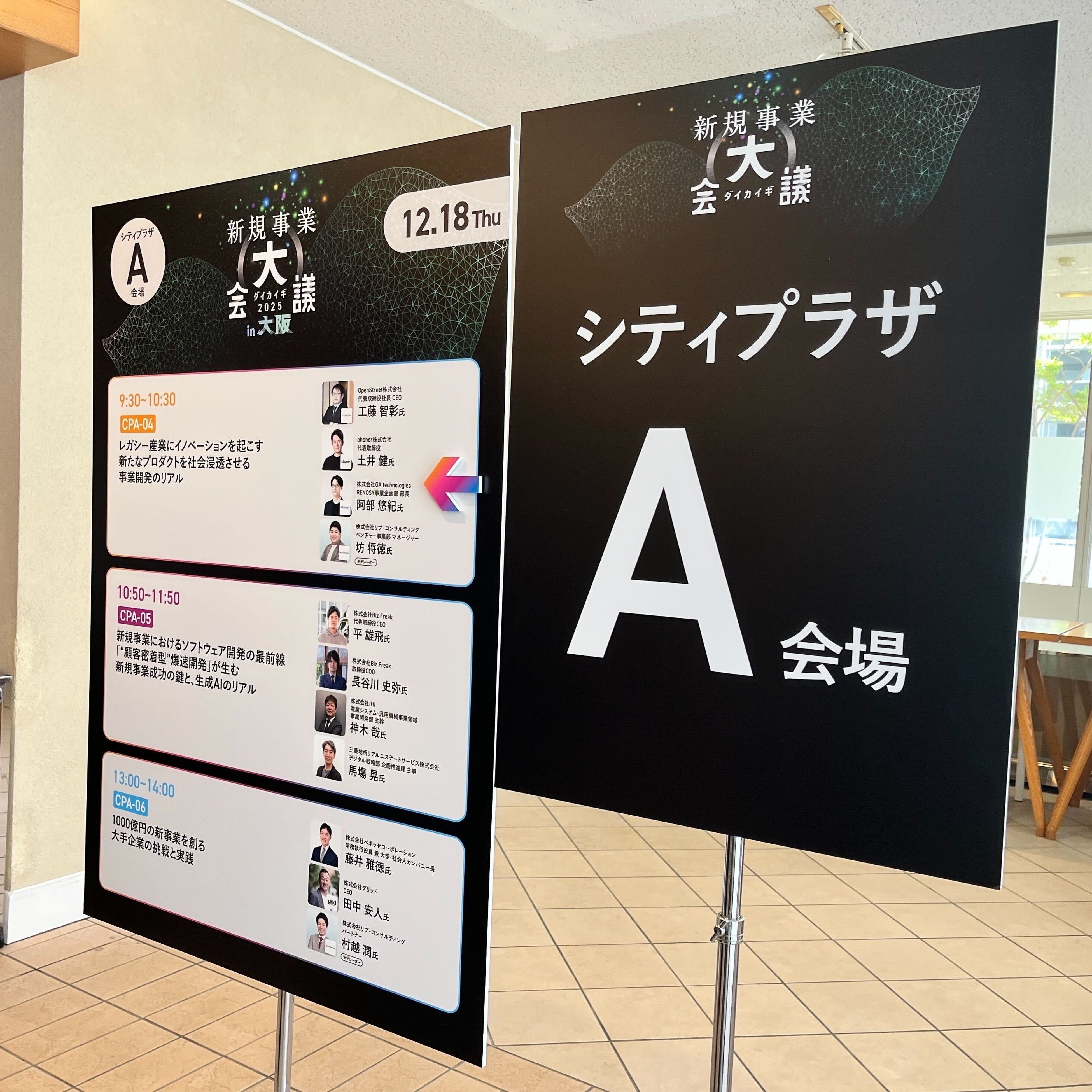 OpenStreet株式会社(本社:東京都港区、代表取締役社長 CEO:工藤 智彰、以下「OpenStreet」)は、12月18日(木)に大阪府大阪市内のシティプラザ大阪で行われた『事業開発SUMMIT(「新規事業 大会議2025 in大阪」内にて開催・以下、「本イベント」)』に参加し、「レガシー産業にイノベーションを起こす新たなプロダクトを社会浸透させる事業開発のリアル」と題したパネルセッションに登壇しました。