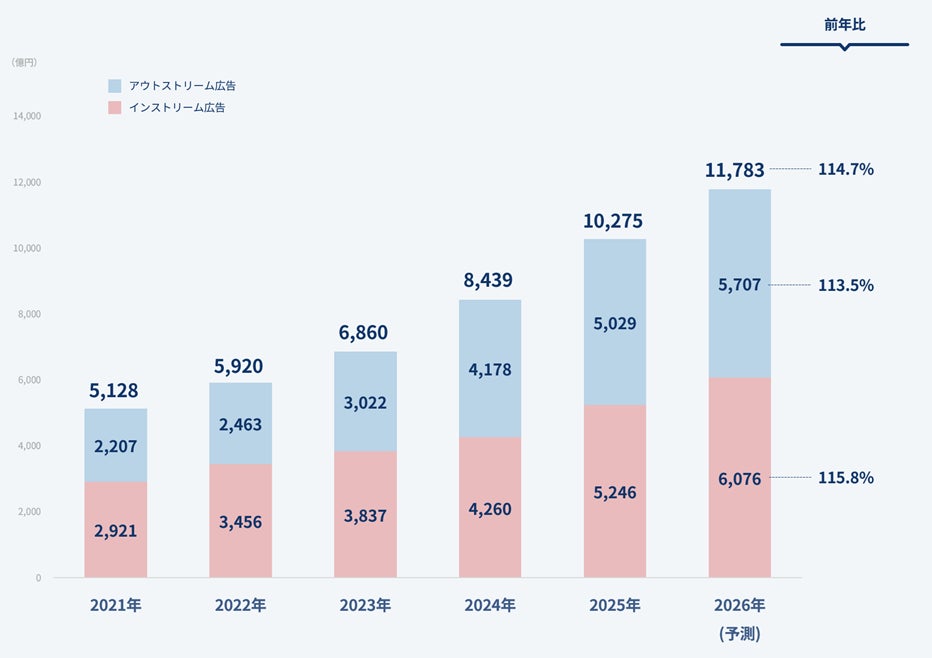 ~2026年のビデオ(動画)広告は、前年比114.7%の1兆1,783億円へ~