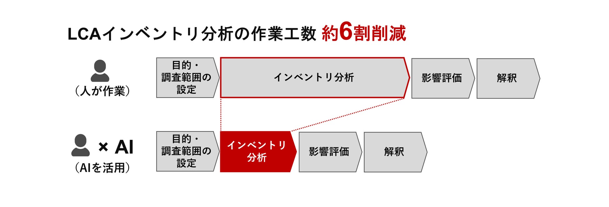 削減率の約6割および、LCA算定におけるLCAインベントリ分析の割合は、当社内実績に基づいて算出。