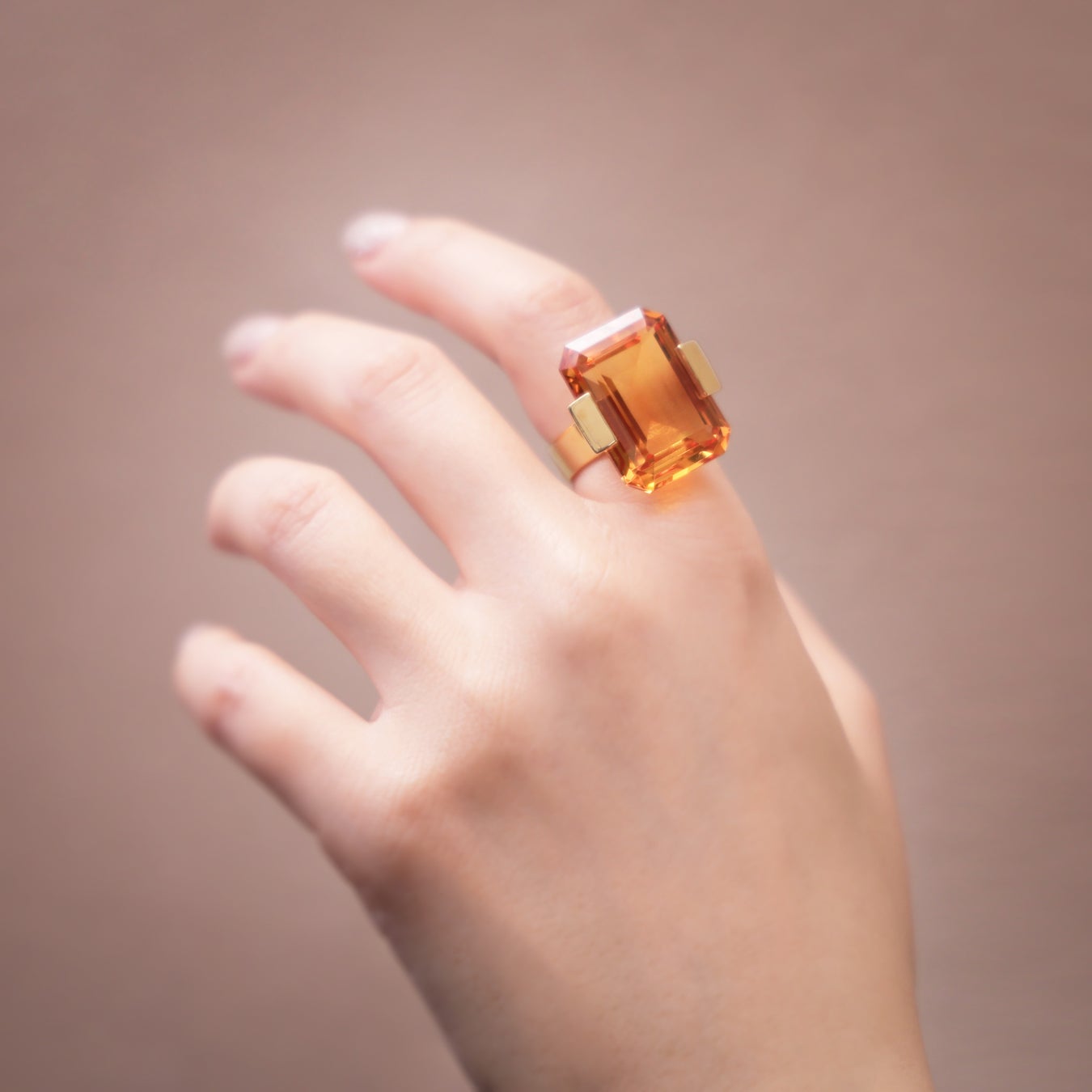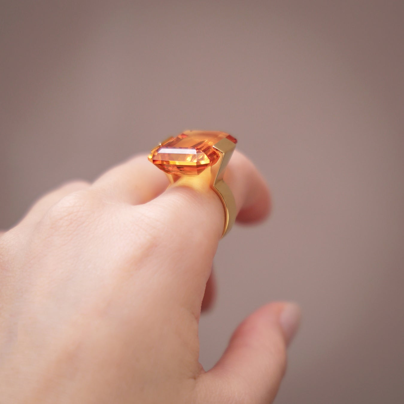 自分で選んだ天然石のルースと素材(K10YG、K18YG)を組み合わせ、世界に一つだけのカスタムリングとしてオーダーできます。天然石超特大ルースとサイドにセッティングされたボリュームのあるゴールドが、ドラマティックな雰囲気を放つデザインのリングです。