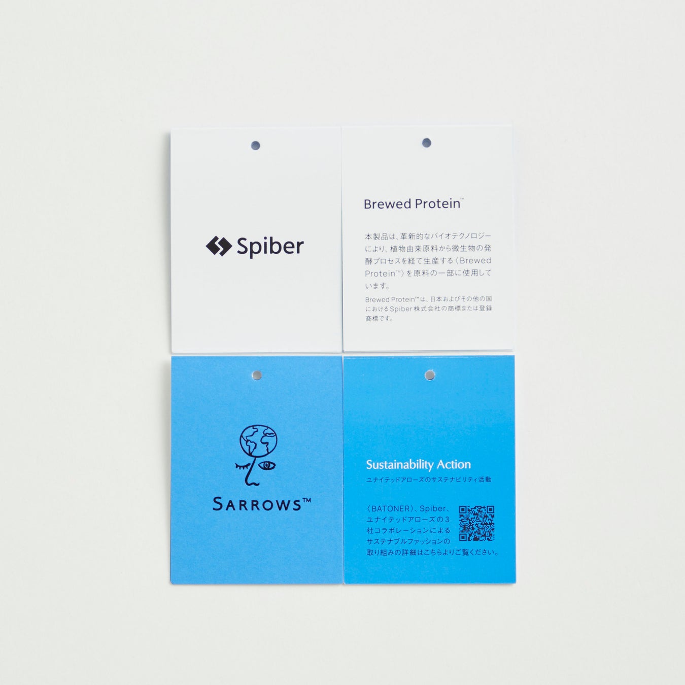 当商品には、㈱ユナイテッドアローズのサステナビリティ活動「SARROWS」のタグが付属されます。お客様に積極的にお伝えしたい環境配慮素材や技術が採用されている商品に付けられるもので、今回が初めての取り組みになります。